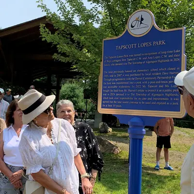 The renovated Dorset Recreation Centre was re-opened to the public with a community celebration on Saturday, July 27. The event included speeches, a catered lunch, live music, children's activities, a push-in ceremony for Dorset's new pumper truck, and the official dedication of Tapscott Lopes Park!